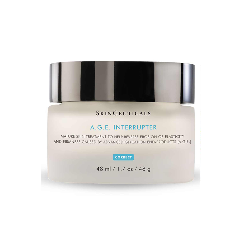 SkinCeuticals A.G.E. Interrupter slows the loss of elasticity and firmness in your skin with a potent anti-aging recipe. The formula is designed to reduce the production of advanced glycation end products. As a result, this anti-aging cream helps keep your collagen levels up and delays the weakening of your epidermis.