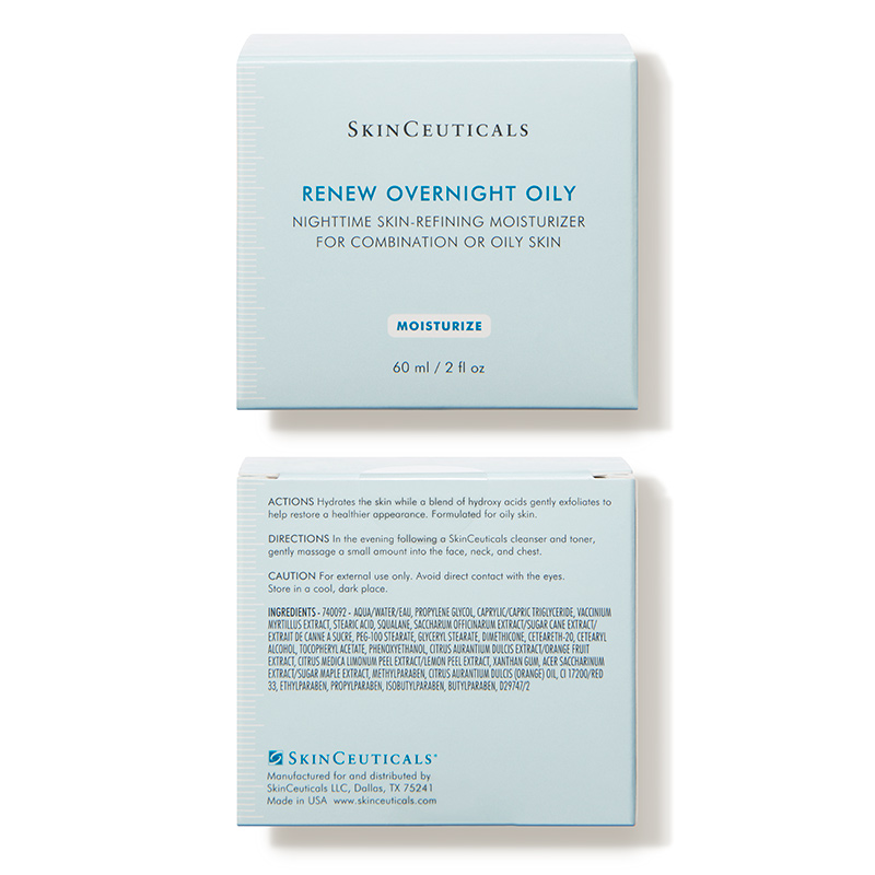 Renew Overnight Oily is an Ideal for combination or oily skin, this nighttime skin-refining moisturizer diminishes the appearance of fine lines and wrinkles by hydrating and exfoliating the skin. The 10% hydroxy acid blend works synergistic-ally to gently exfoliate dead skin cells.