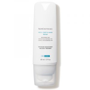 SkinCeutical Neck, Chest & Hand Repair là kem chống lão hóa đặc biệt dành cho vùng da ở cổ, ngực thường xuyên tiếp xúc với ánh nắng mặt trời. Giúp làn da săn chắc và làm mờ các vết đốm đồng thời làm sáng da
