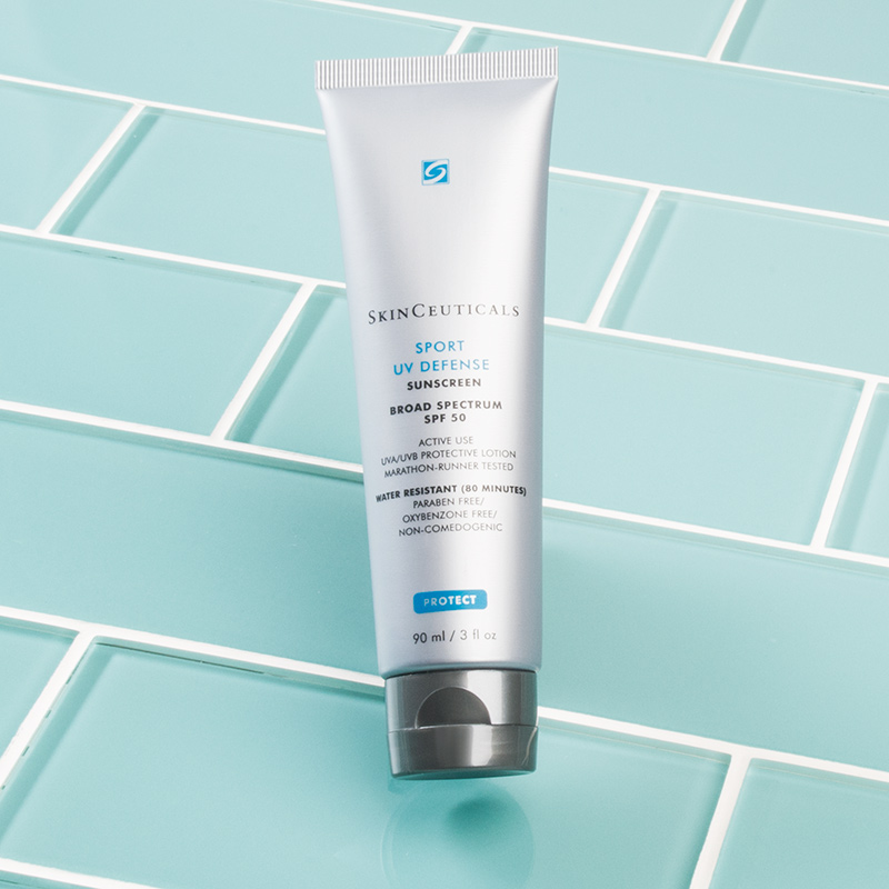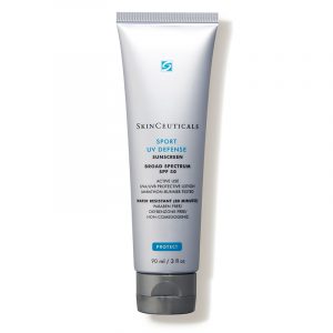 Kem chống nắng thể thao Sport UV Defense SPF 50 của thương hiệu Skinceutical là loại kem chống nắng phổ rộng UVA/UVB. Đây là loại kem chống nắng không chứa oxybenzone cung cấp khả năng chống lại các tia gây hại cho da đồng thời giúp cho không gây khó chịu cho người sử dụng. Sản phẩm còn được kết hợp với Artemia Salina, chiết xuất sinh vật phù du, tăng cường khả năng chống tia UV và stress nhiệt của da, bảo vệ collagen khỏi tác hại của tia cực tím. Sản phẩm này đã được thử nghiệm trong điều kiện thể thao khắc nghiệt nhất đem lại kết quả tuyệt vời.